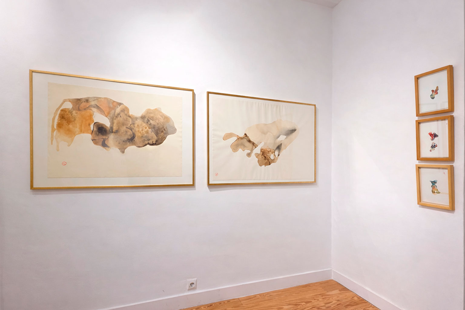Memorias del agua parte de la práctica basada en una observación prolongada junto con una actuación metodológica en diferentes ritmos que se traducen en una variedad infinita de comportamientos de los materiales usados. Es así como el agua, en interacción con el pigmento y otras materias, desborda la intencionalidad del gesto.